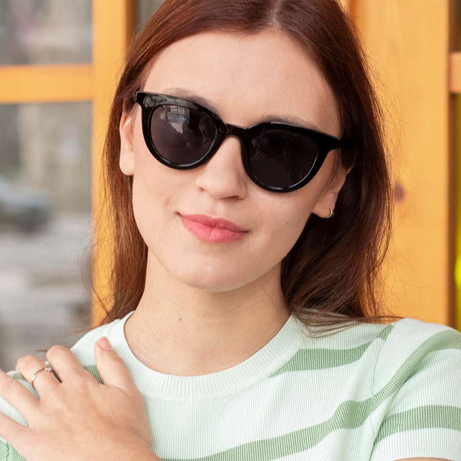 Les verres teintés offrent une protection UV400 (catégorie 3), idéale pour les journées ensoleillées. La monture, légère et agréable à porter, est fabriquée en acétate recyclé dans une démarche plus responsable.