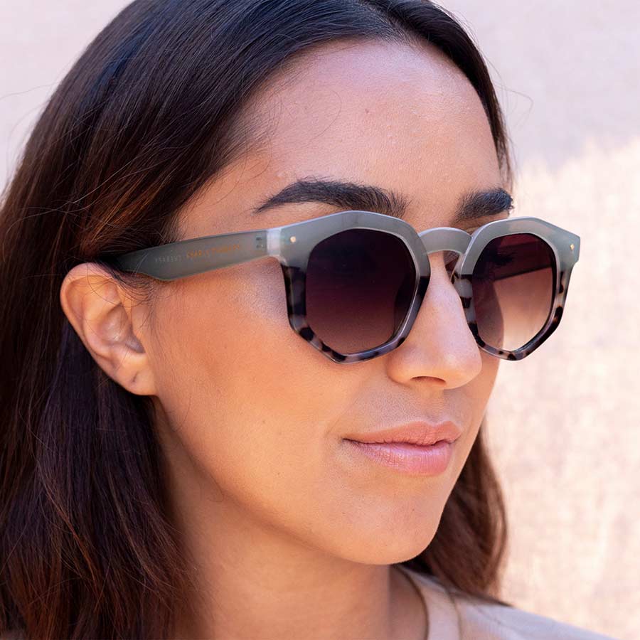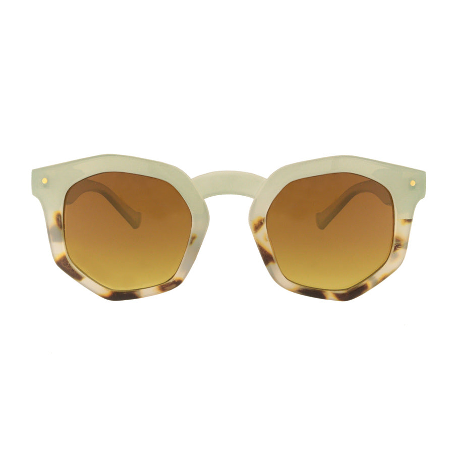 Un design tout en contraste, une forme graphique et une palette ultra raffinée : le modèle Audrey se réinvente en version Bahia, pour un look solaire à la fois audacieux et délicat. Avec sa monture hexagonale oversize et son dégradé de teintes du vert menthe à l’écaille parsemée de teinte crème, cette paire ne ressemble à aucune autre.