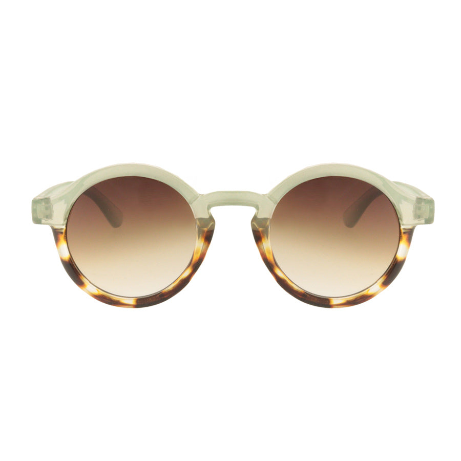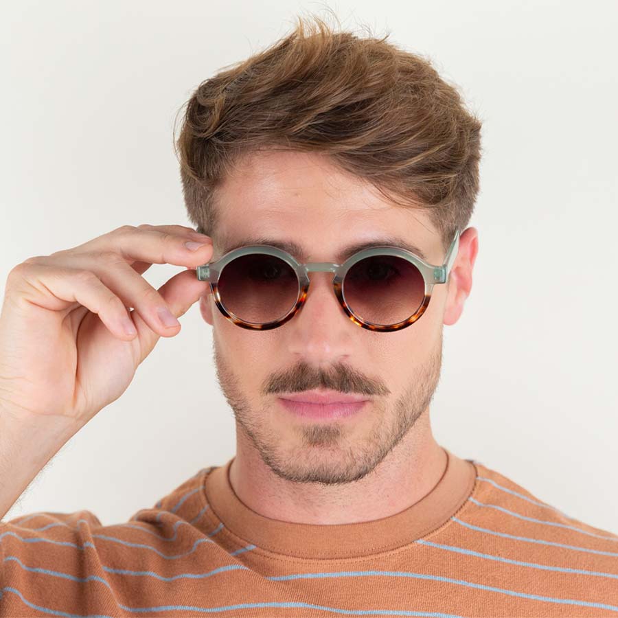La Belmont, c’est la rondeur dans ce qu’elle a de plus graphique. Ni trop fine ni trop oversize, sa forme parfaitement équilibrée encadre le visage avec douceur tout en structurant la ligne du regard. Le modèle Bahia, en particulier, se distingue par une monture en acétate qui mêle un vert menthe transparent dans la partie supérieure à un fondu d’écaille et de crème sur le bas. Subtil, lumineux, et terriblement stylé.