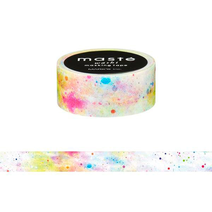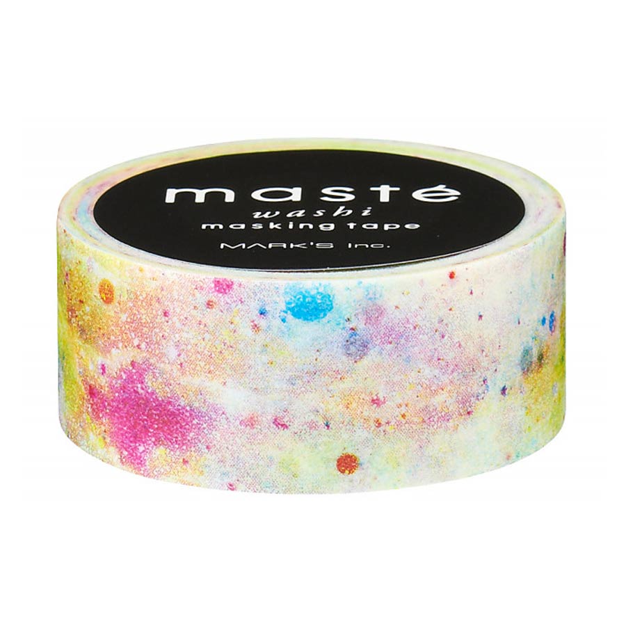 Emballez et décorez avec ce masking tape Masté au motif cosmique. Idéal pour décorer vos carnets ou pour accrocher vos cartes et illustrations préférées. Fabriqué en papier de riz, ce joli scotch est repositionnable et peut se découper à la main.