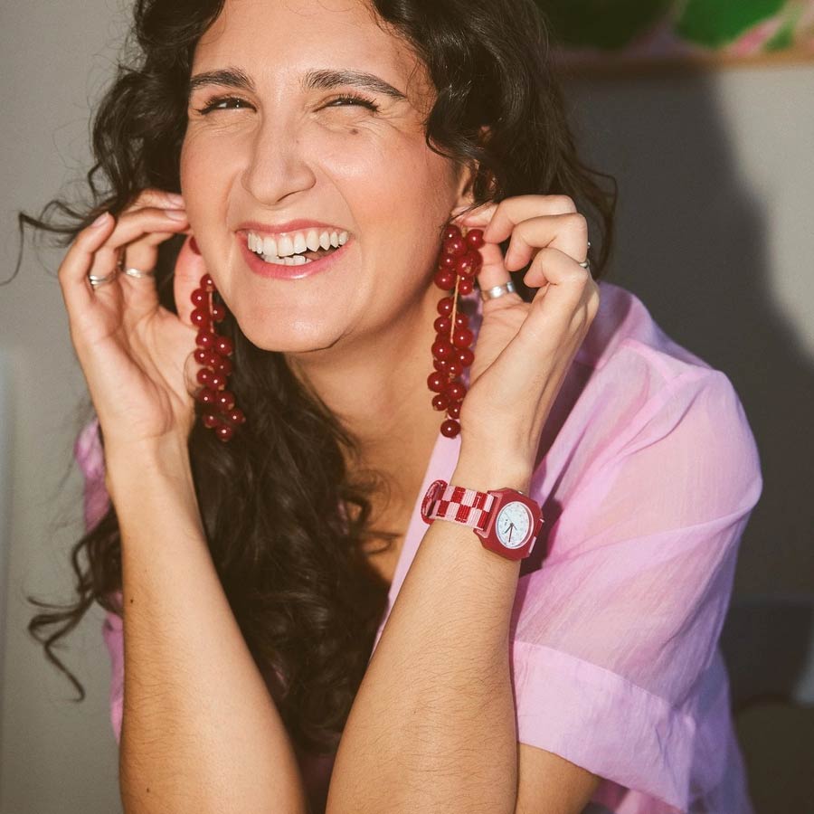 Envie d’une version dans d'autres tons ? Découvrez aussi la montre bleu à carreaux : même style graphique, avec un look tout en douceur.