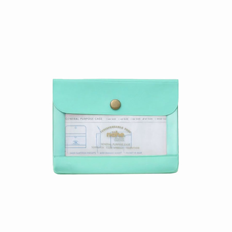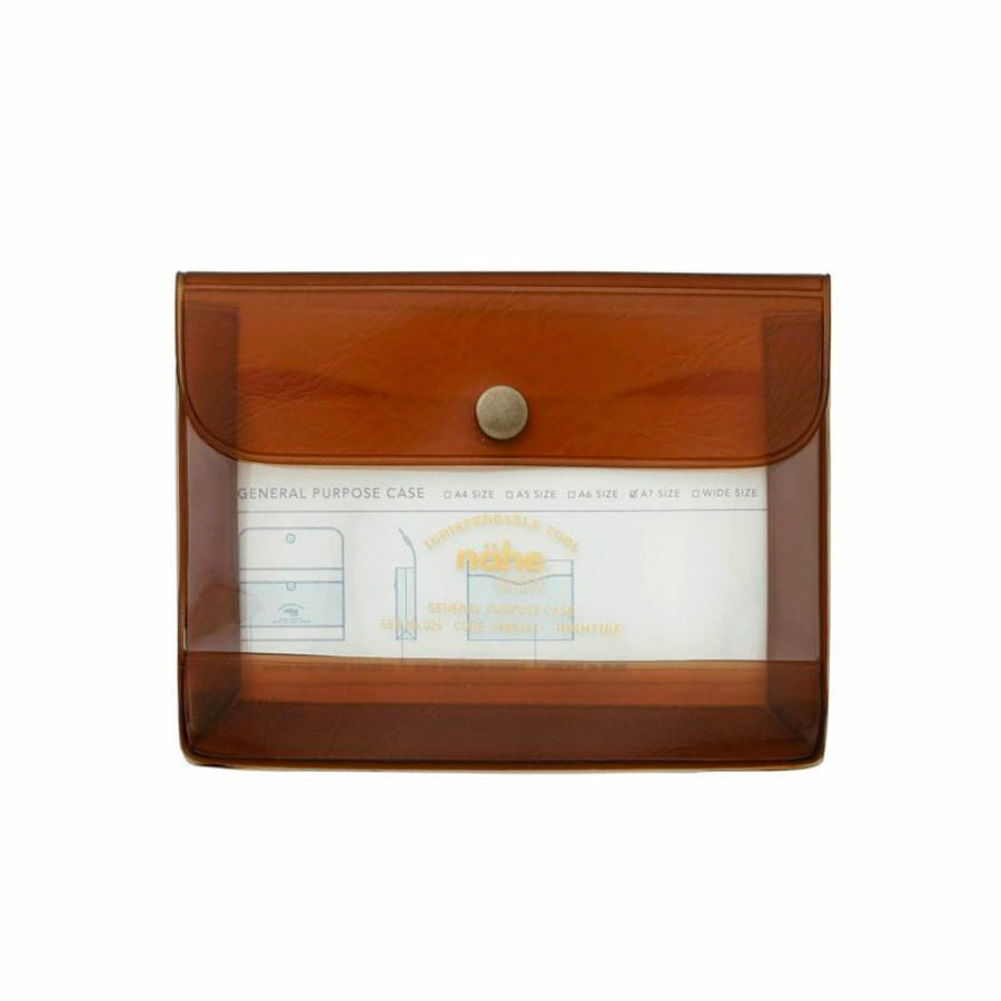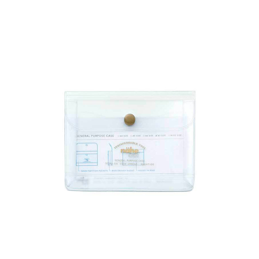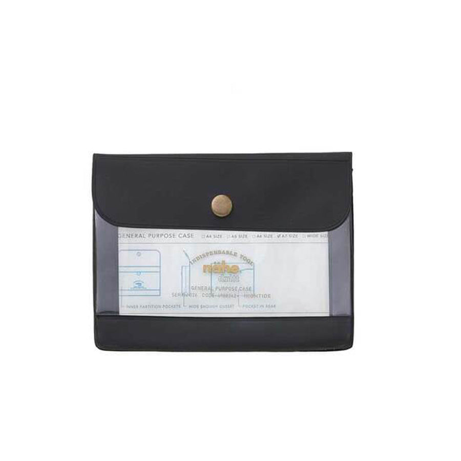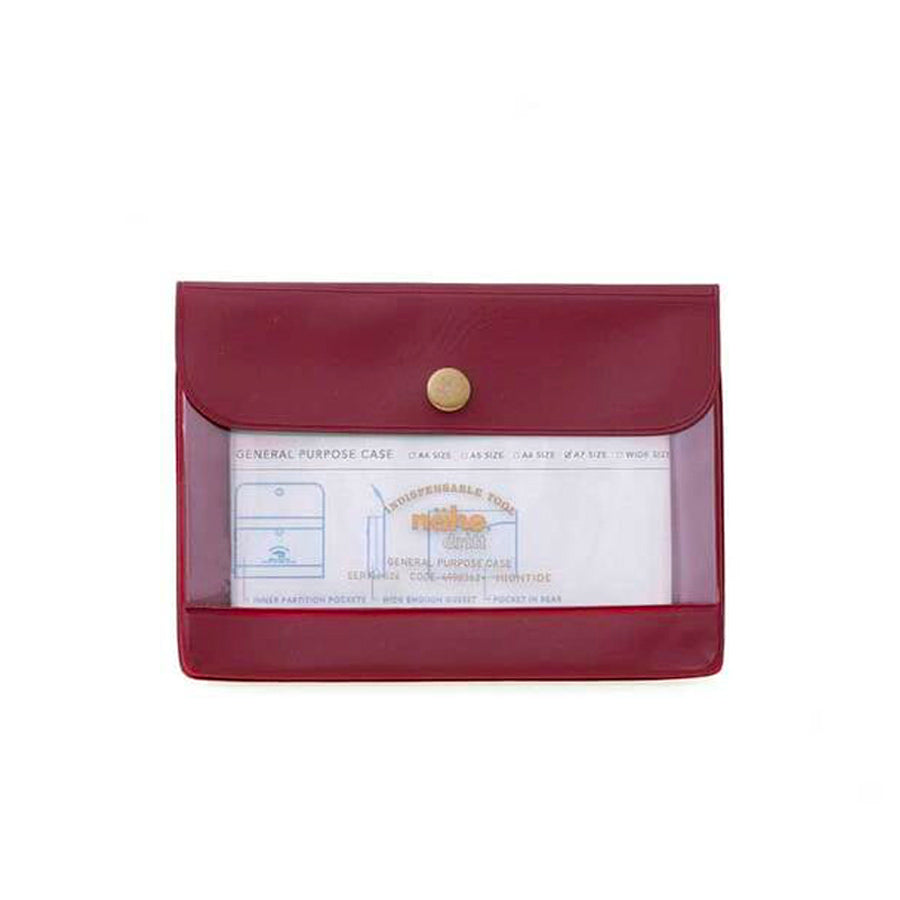 La Pochette Nahë format A7 de la marque japonaise Hightide. Une pochette robuste et élégante avec un petit bouton poussoir en laiton pour la fermer. Grâce à sa fenêtre transparente, vous pouvez en un coup d'oeil voir ce qui se trouve à l'intérieur !