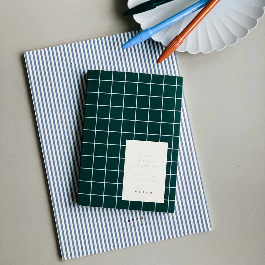 Ce joli carnet de notes Uma à la couverture quadrillée vert est composé de pages lignées. Idéal pour noter toutes vos to-do list, idées créatives, etc. La marque scandinave Notem présente ce cahier avec une reliure à plat et au format A6. Vous ne manquerez pas d'espace, car ce carnet possède 160 pages.