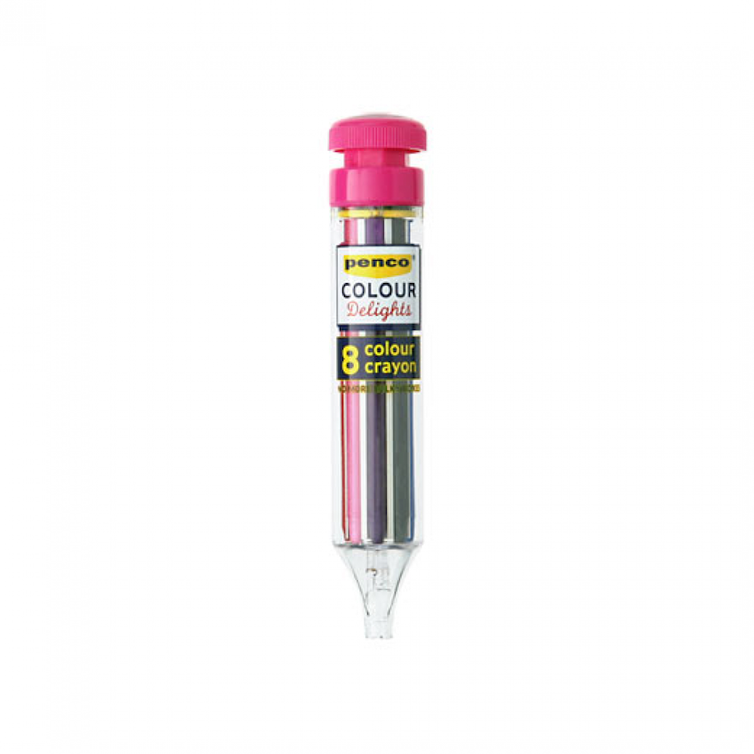 Le crayon 8 couleurs de l'arc-en-ciel de la marque Penco. Avec ce crayon, choisissez votre couleur et laissez parler votre créativité. Tournez le canon en haut pour choisir l'une des huit couleurs logées dans le barillet en plastique.