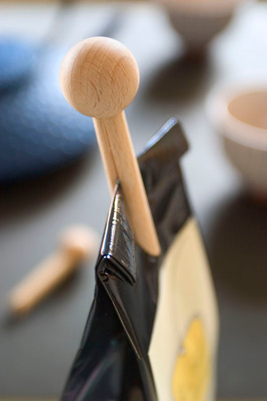 La pince à sachet en bois de hêtre, Tout simplement. Cette pince qui referme les sachets est conçue en bois de hêtre provenant des forêts françaises. Elle respecte les normes alimentaires. Son design épuré et son matériau naturelle lui donne un style design et pratique.