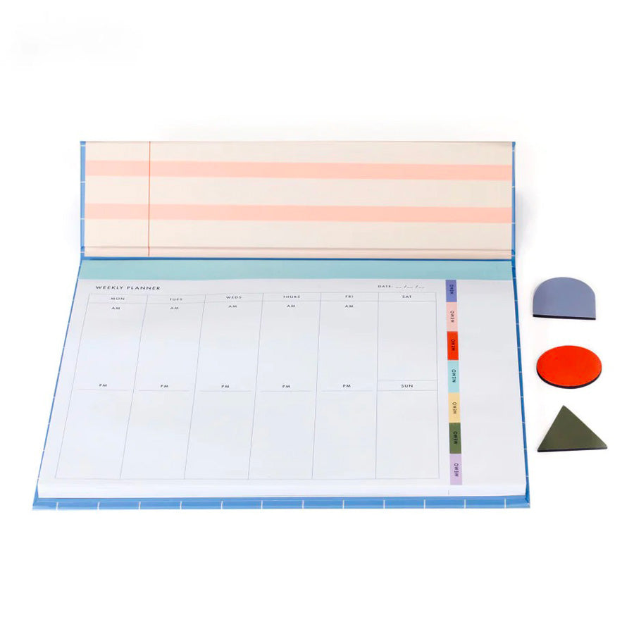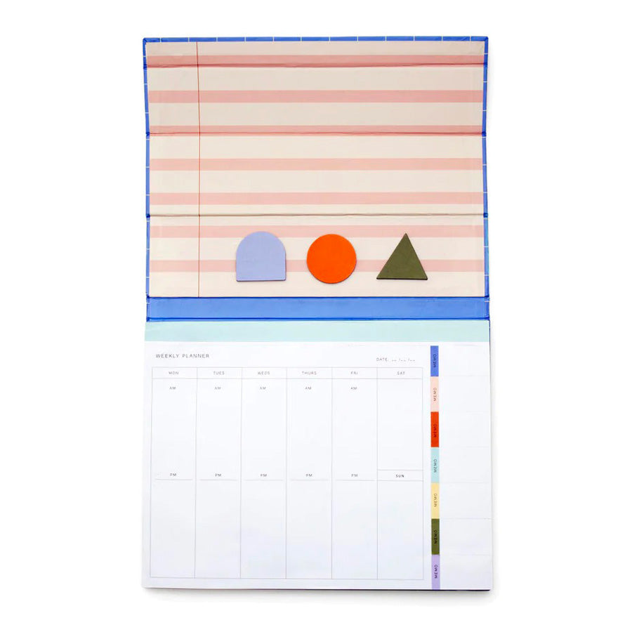 Découvrez le planner de chez Kikkerland. Le design graphique de cet agenda a été conçu par Goodlines. Ce semainier contient 12 mois sans dates pour pouvoir planifier aisément votre quotidien. Il y a également un petit espace mémo magnétique avec trois aimants pour mettre en avant les tâches urgentes ou en cours.
