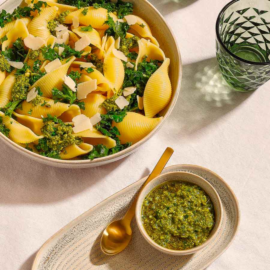 - Présenter joliment un bol de sauce ou de pesto avec une petite cuillère dorée