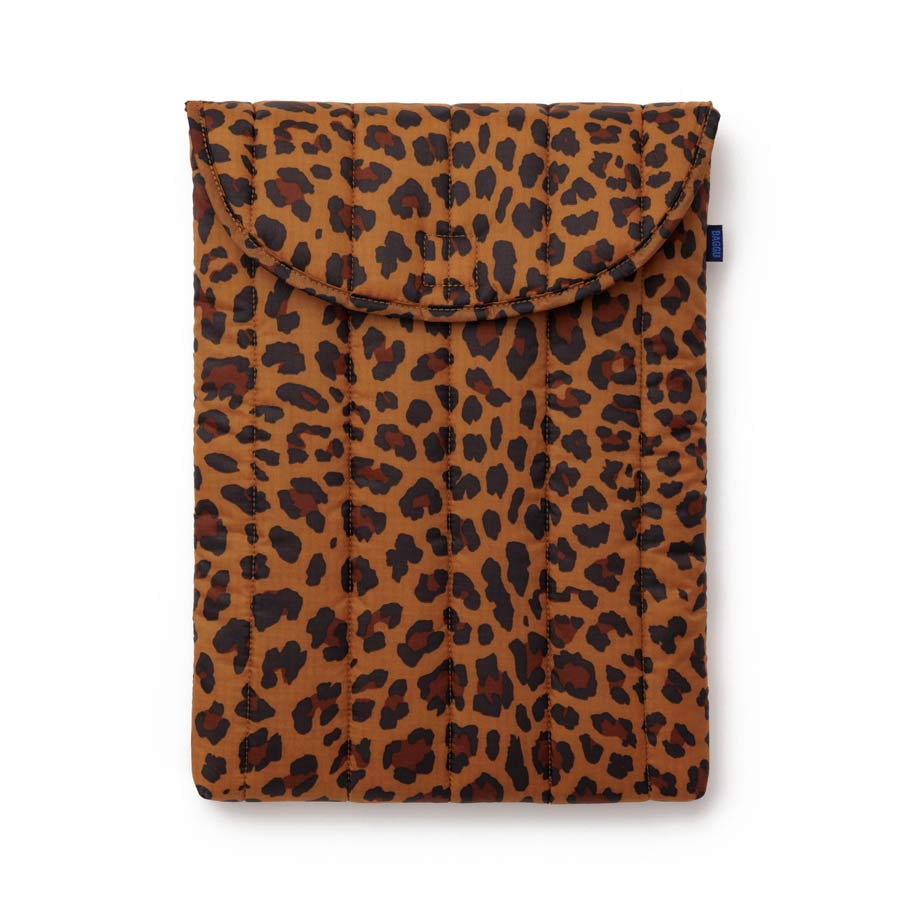 La pochette d’ordinateur Puffy Laptop Sleeve Léopard de Baggu affirme un style audacieux tout en restant parfaitement portable au quotidien. L’imprimé léopard, devenu un vrai intemporel, apporte une touche mode assumée sans être excessif. Graphique, moderne et facile à associer, il transforme un accessoire pratique en véritable statement.