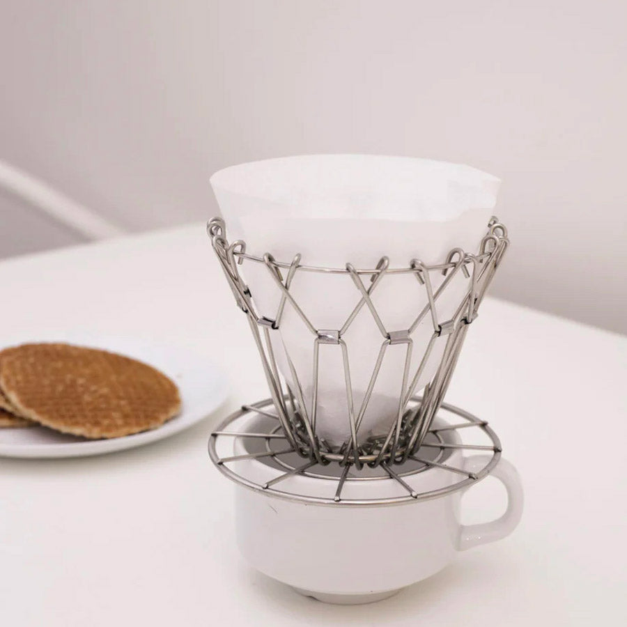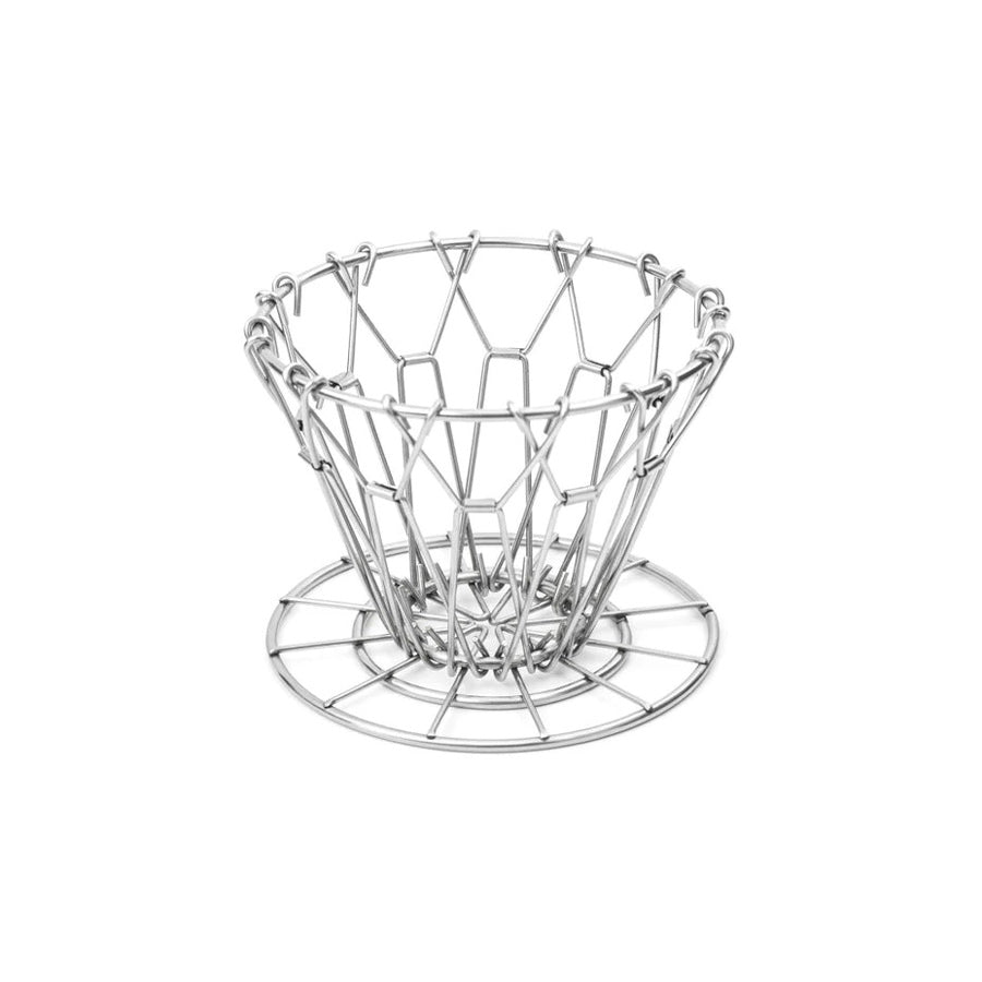 Le porte filtre pliant de chez Kikkerland. Facile à utiliser ce porte filtre en métal convient pour tous types de filtres à café. Pliable, il est idéal pour l'emmener partout avec soi. En camping ou sur la route, vous pourrez déguster votre café grâce à ce porte filtre. A poser directement sur votre tasse ou votre mug. Un filtre à café, du café moulu, de l'eau chaude et le tour est joué. Avec sa maille métallique, il est résistant pour pouvoir l'emmener partout.