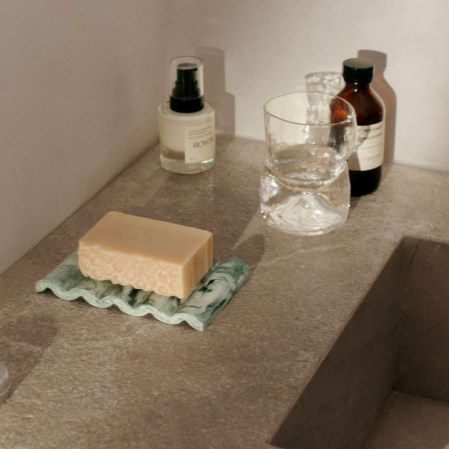 Chaque pièce présente un motif tourbillonnant propre à la collection Mist, rendant chaque exemplaire singulier. Sa surface plane permet de garder le savon bien au sec, tout en s'intégrant facilement à différents styles d’intérieur.