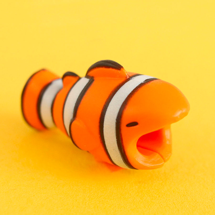 Ce mini poisson clown apporte une bonne dose de fun à votre chargeur tout en le protégeant efficacement. Il s’enroule autour de votre câble (universel) et agit comme un petit garde du corps anti-casses.