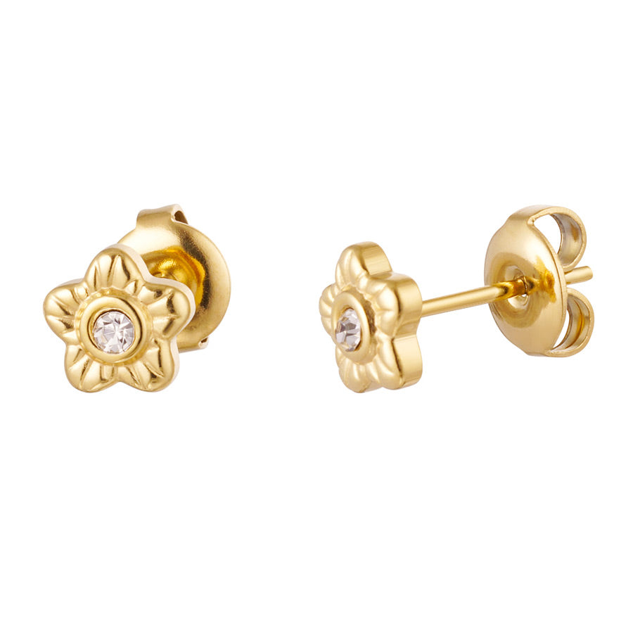 Optez pour une touche de délicatesse avec nos adorables clous d'oreilles en or en forme de petites fleurs ! Parfaites pour accompagner toute occasion, ces boucles d'oreilles arborent une petit brillant au centre, ajoutant ainsi une subtile touche d'éclat à votre look.