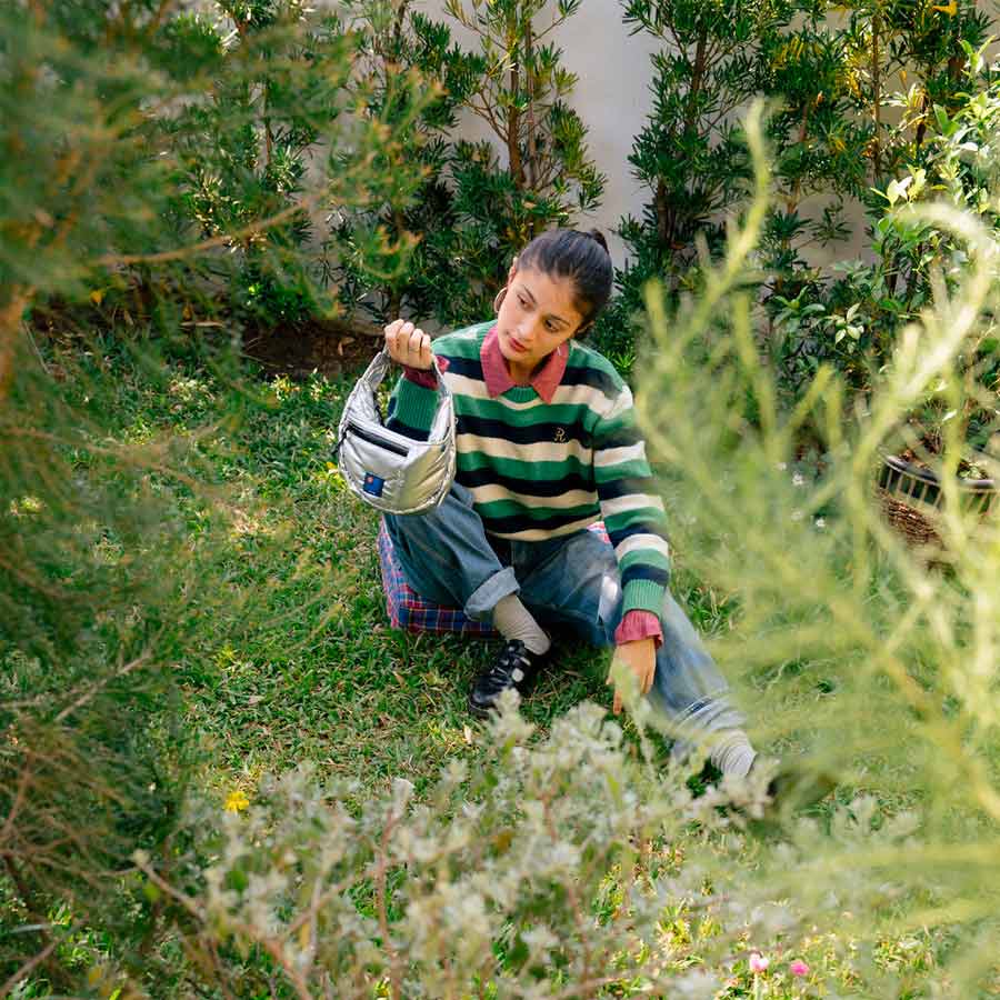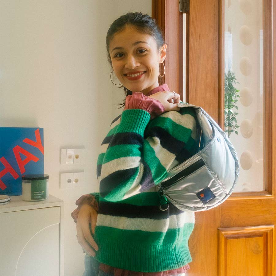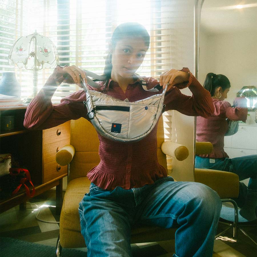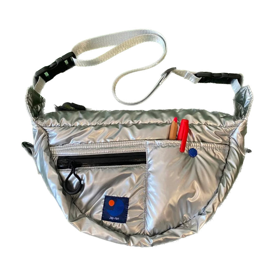 Découvrez ce sac demi-lune métallique de la marque Japfac ! Celui-ci est fabriqué en fibre synthétique, 100% recyclé. En effet, la création d'un sac banane représente l'équivalent de 5 bouteilles en plastique.