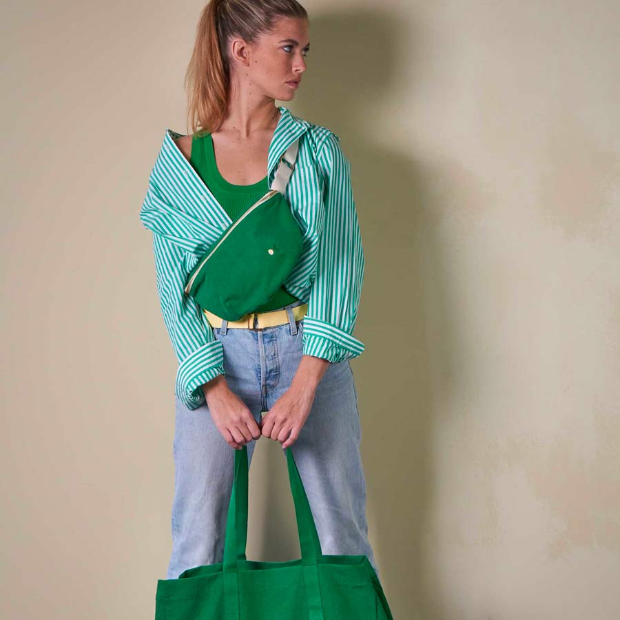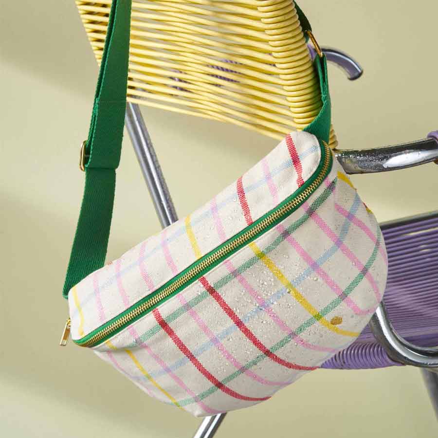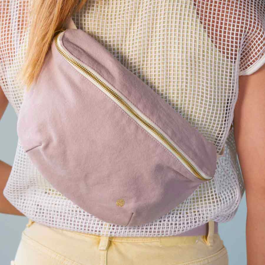 Découvrez le sac banane de La Cerise sur le Gâteau ! Conçu en coton biologique certifié Oeko-Tex, celui-ci est léger, ce qui le rend confortable à porter toute la journée. Sa poche intérieure permettra de garder les objets essentiels tels que vos cartes et vos clés organisés et faciles d'accès.