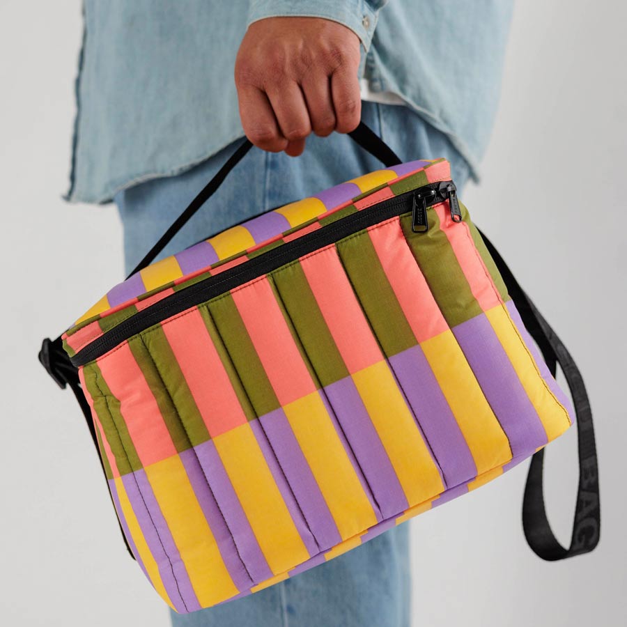 Le sac glacière Puffy rayé multicolore est la glacière la plus stylée.