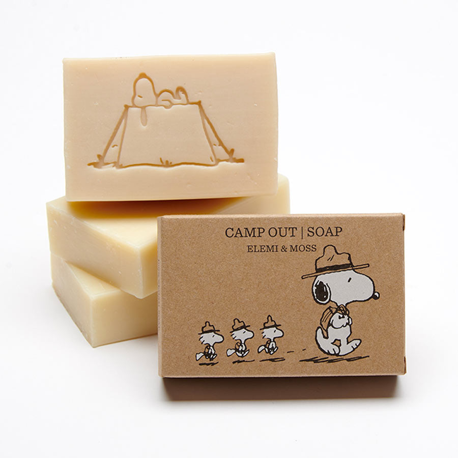 Retrouvez le savon Peanuts Camp out au doux parfum Mousse et élémi de chez Magpie.