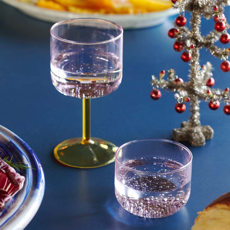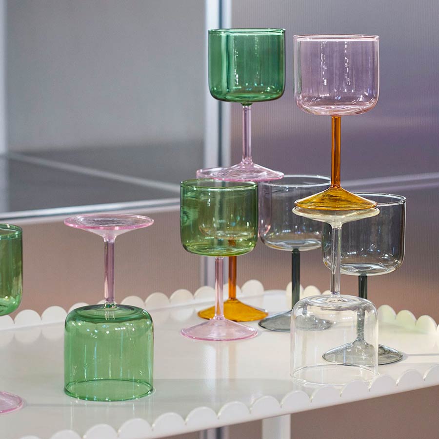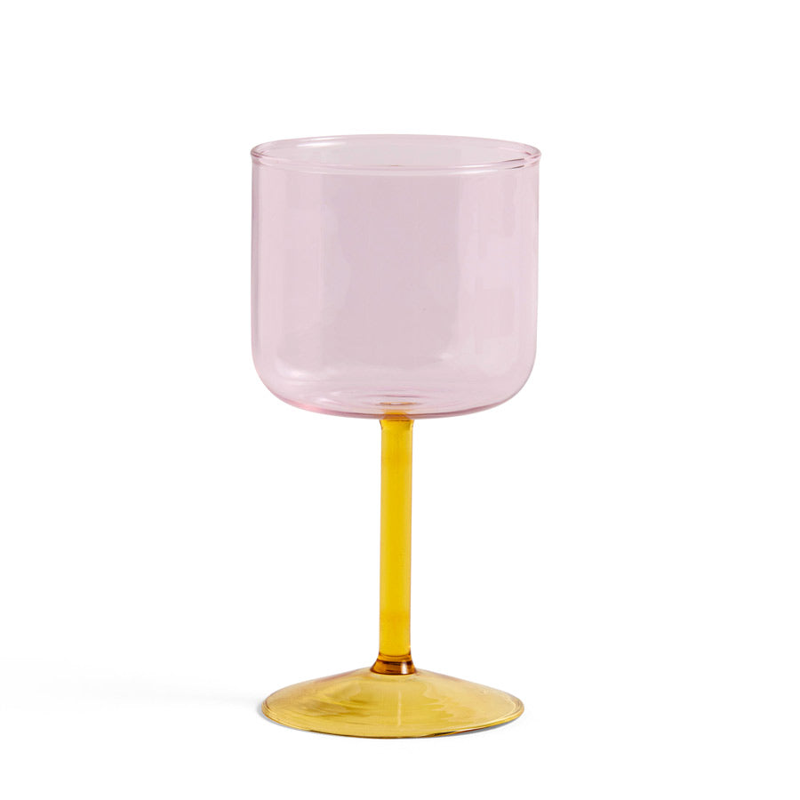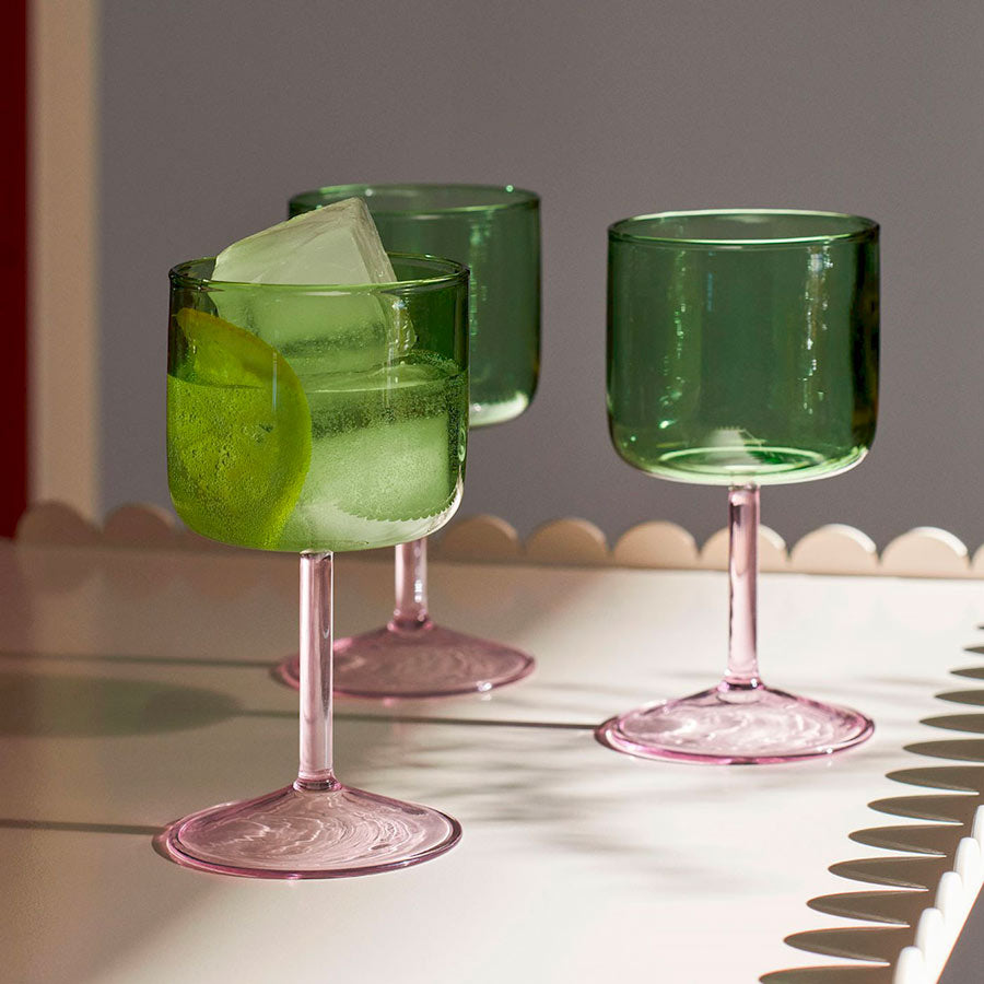 Servez avec élégance vos boissons avec cet ensemble de 2 verres à vin Tint en verre teinté. Une forme classique mise au goût du jour par des couleurs vives. Cet ensemble de deux verres à pied existent en deux associations de couleurs :