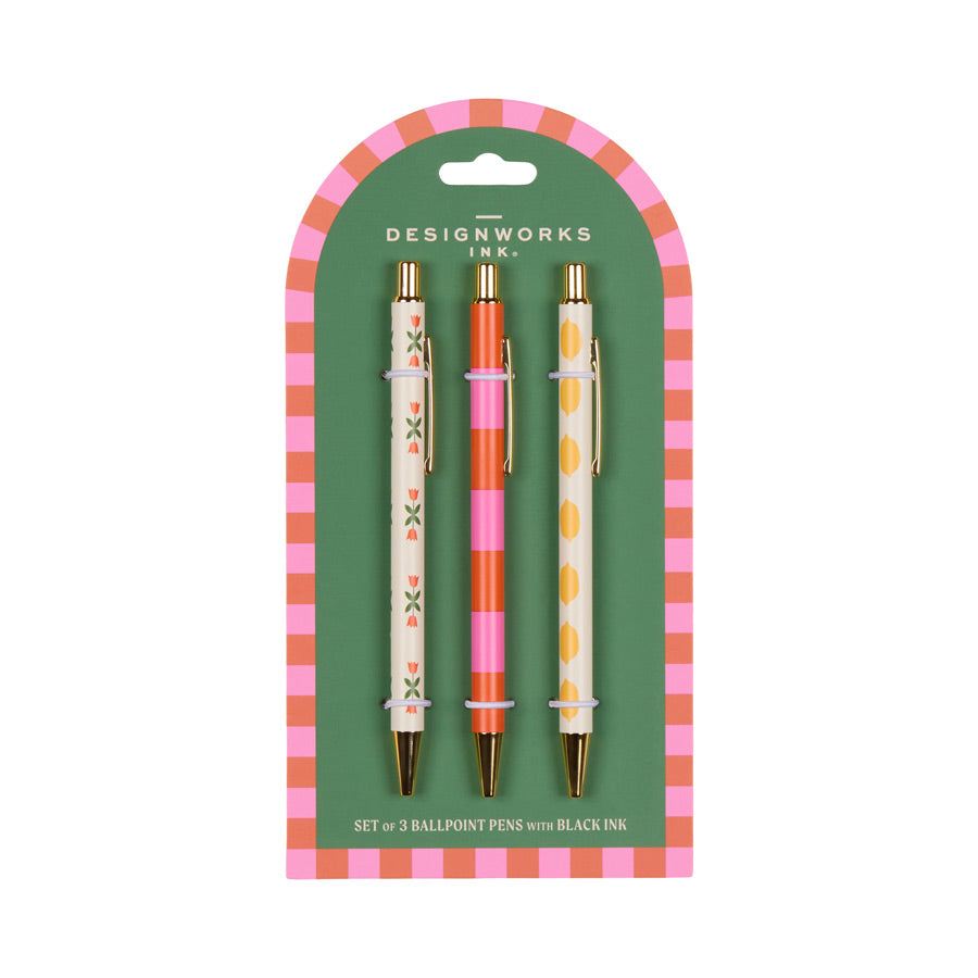 ✨ Set de 3 stylos DesignWorks Ink – fleurs, rayures, citrons : un trio qui inspire ✨