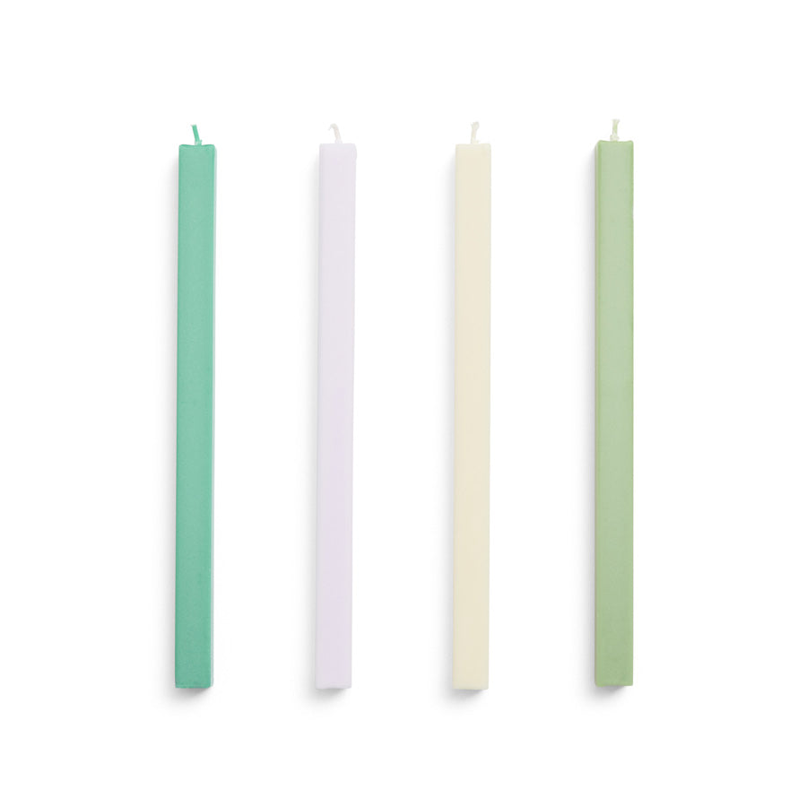 Accordez-vous un moment paisible en vous entourant de ces magnifiques bougies carrées fresh de chez Hay. Que ce soit pour une soirée détente, un bain relaxant, ou un dîner, ces bougies offrent une lumière douce et apaisante, créant une atmosphère chaleureuse. Ce set de chandelles contient 4 couleurs différentes :