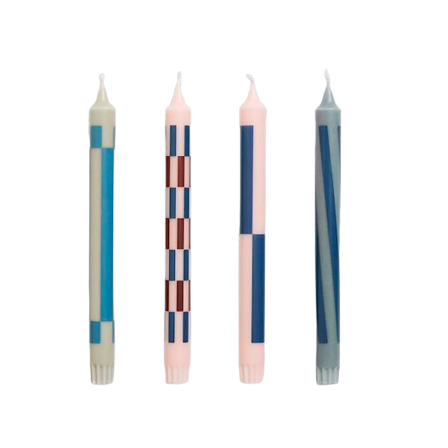 Découvrez ce set de 4 bougies pattern rose et bleu de chez Hay ! Il est possible de disposer cet assortiment géométrique sur une table à manger ou sur une étagère en tant que décoration à part entière. Idéal pour offrir, cet ensemble de bougies apporte une touche design à n'importe quelle pièce.