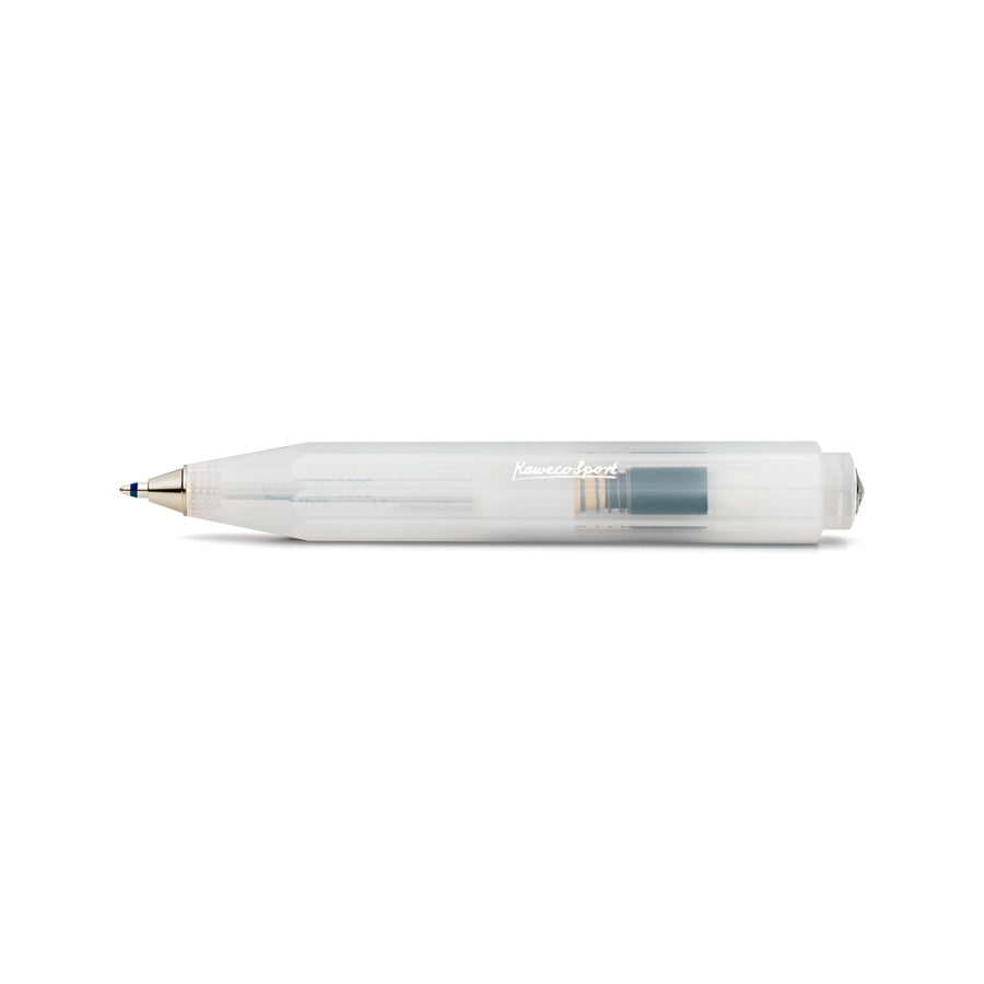 La collection de stylo bille Frosted se caractérise par ses couleurs pastels et sa légère transparence. Vous pourrez apercevoir le mécanisme à l'intérieur du stylo.