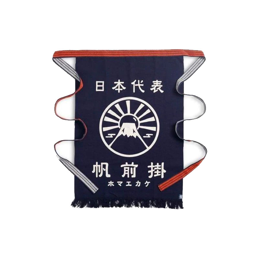 Les tabliers japonais de la marque Anything. Ces tabliers traditionnels existent depuis la période d'Edo. En japonais, ils sont appelés : Maekake. Ils sont fabriqués avec un métier à tisser à navettes Toyota vieux de plus de 100 ans. Le tissu teinté indigo est 100% en coton épais.