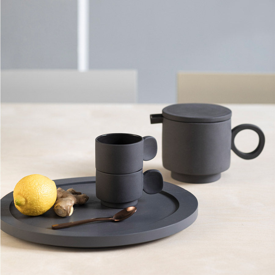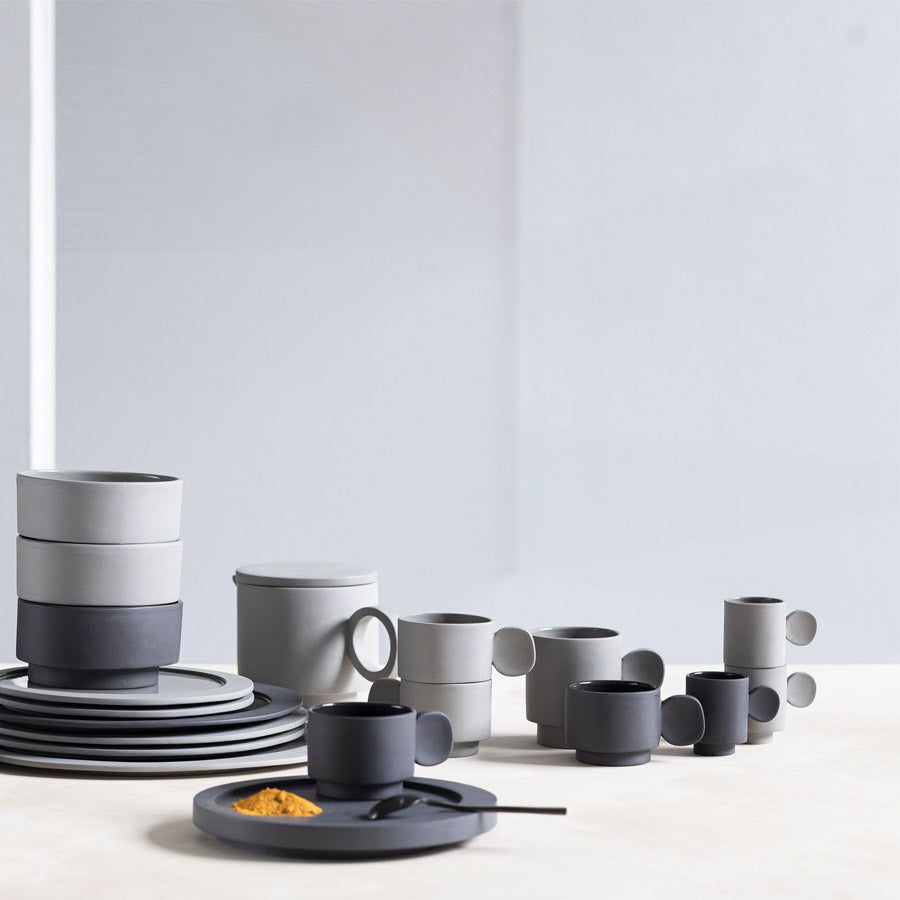 Disponible en gris foncé ou gris clair, la tasse Inner Circle en grès est un objet que l’on a autant plaisir à tenir en main qu’à admirer.