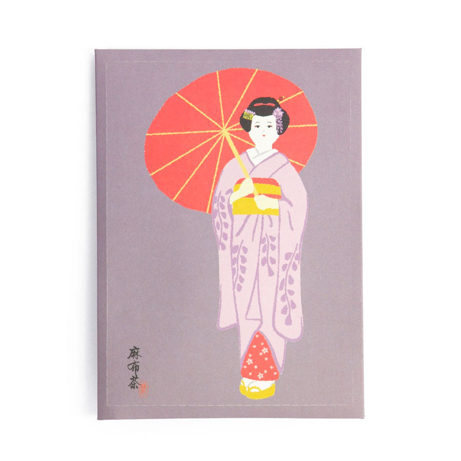 - Une carte au design traditionnel : Maiko sous son ombrelle rouge