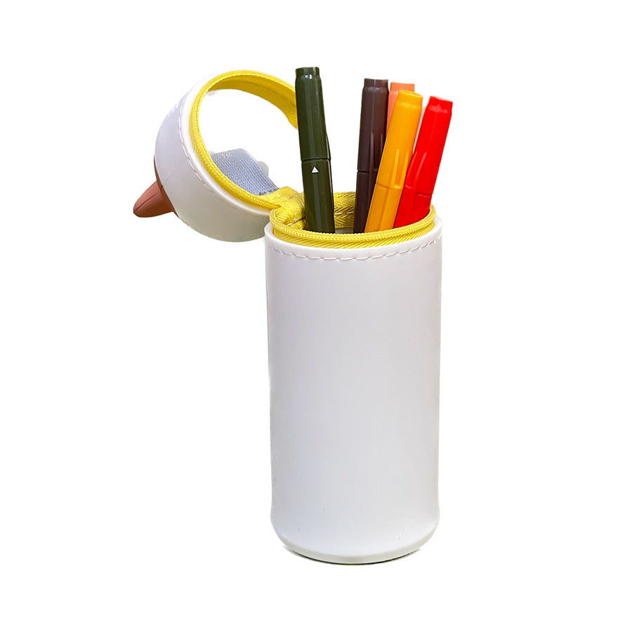 En appuyant sur le bas de la coque en silicone, elle se transforme en joli pot à crayons pour égayer votre bureau. Une petite bande élastique située à l'intérieur de la tête vous permet de ranger une gomme, une clé USB ou un autre petit article. Cette pochette douce et lisse au toucher est facile à nettoyer.