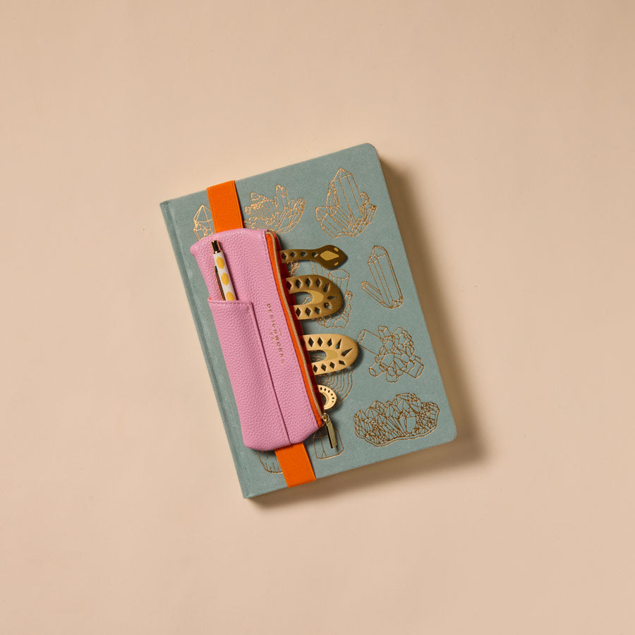 - Bye-bye les stylos qui se perdent dans le sac ! Ici, on accroche la trousse directement au carnet, pour un ensemble harmonieux et ultra pratique. Vos stylos, gomme ou mini règles seront toujours à portée de main.