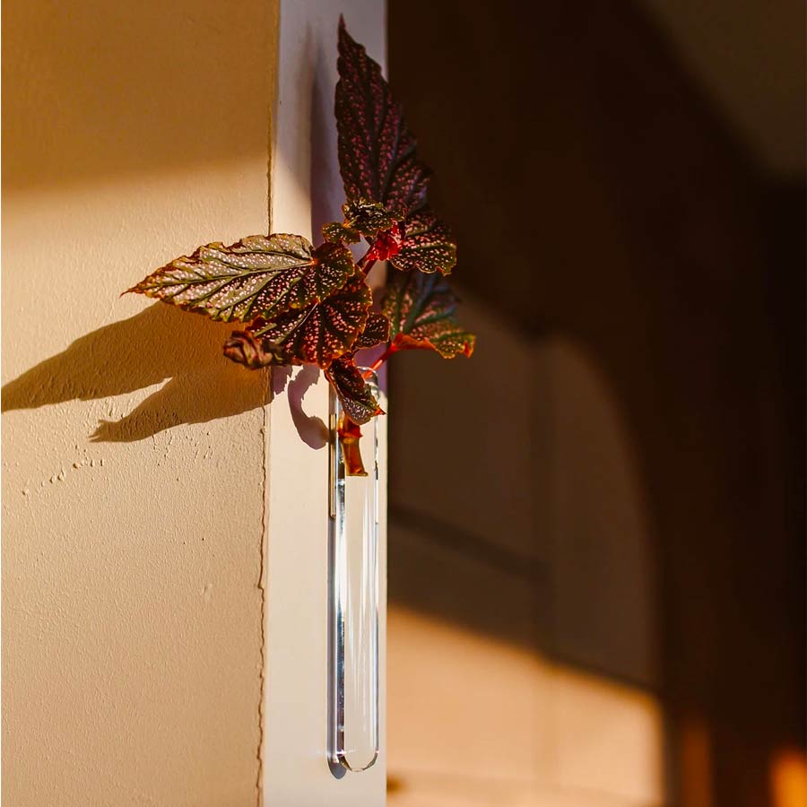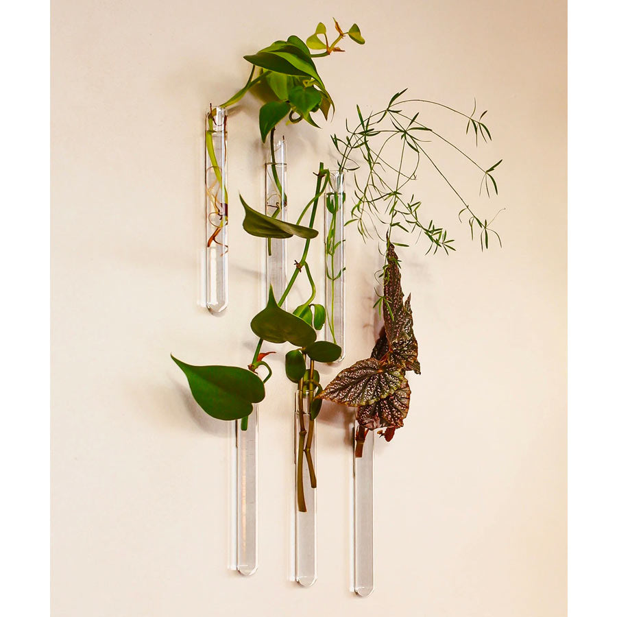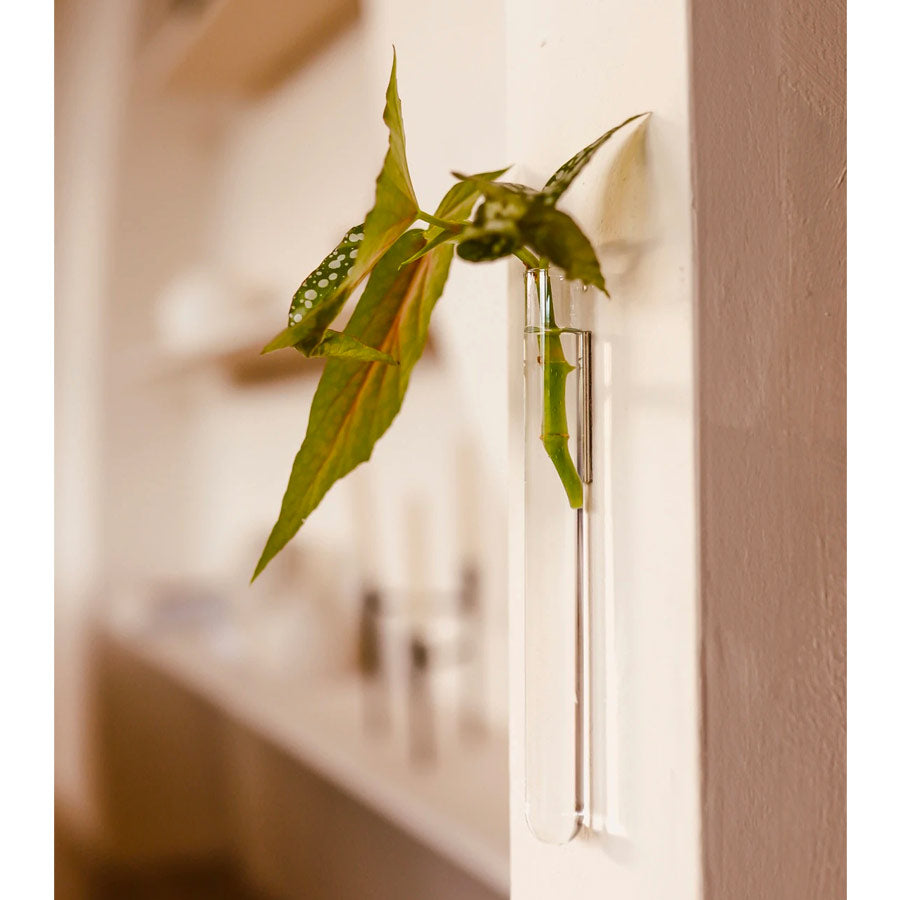 Son design fin et transparent évoque un tube à essai. Celui-ci sublime les plantes en toute simplicité, créant une suspension florale aérienne qui attire immédiatement le regard. Fixé sur un mur, il se fond dans le décor tout en mettant en valeur chaque nouvelle pousse.