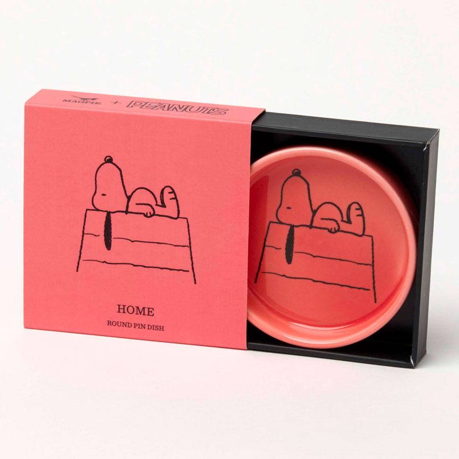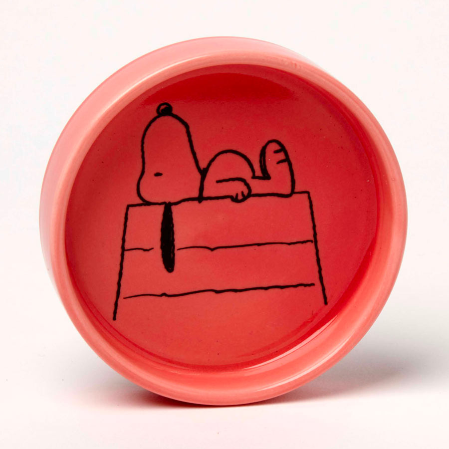 Découvrez le vide-poche rond Peanuts niche de Snoopy de chez Magpie. Fabriqué en céramique, on retrouve sur ce joli support rouge, Snoopy qui est allongé sur le toit de sa maison.