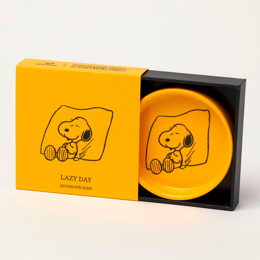 Découvrez le vide-poche rond Peanuts Jour de paresse de chez Magpie. Fabriqué en céramique, on retrouve sur ce joli support jaune, Snoopy en train de se relaxer contre son oreiller.