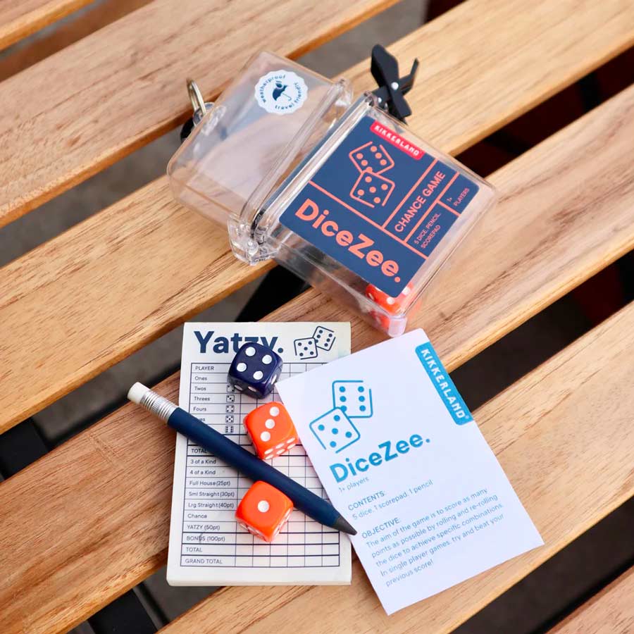 Découvrez ce jeu de poche Yatzy de la marque Kikkerland ! Sa taille compacte le rend facile à transporter dans un sac à dos ou dans une poche.